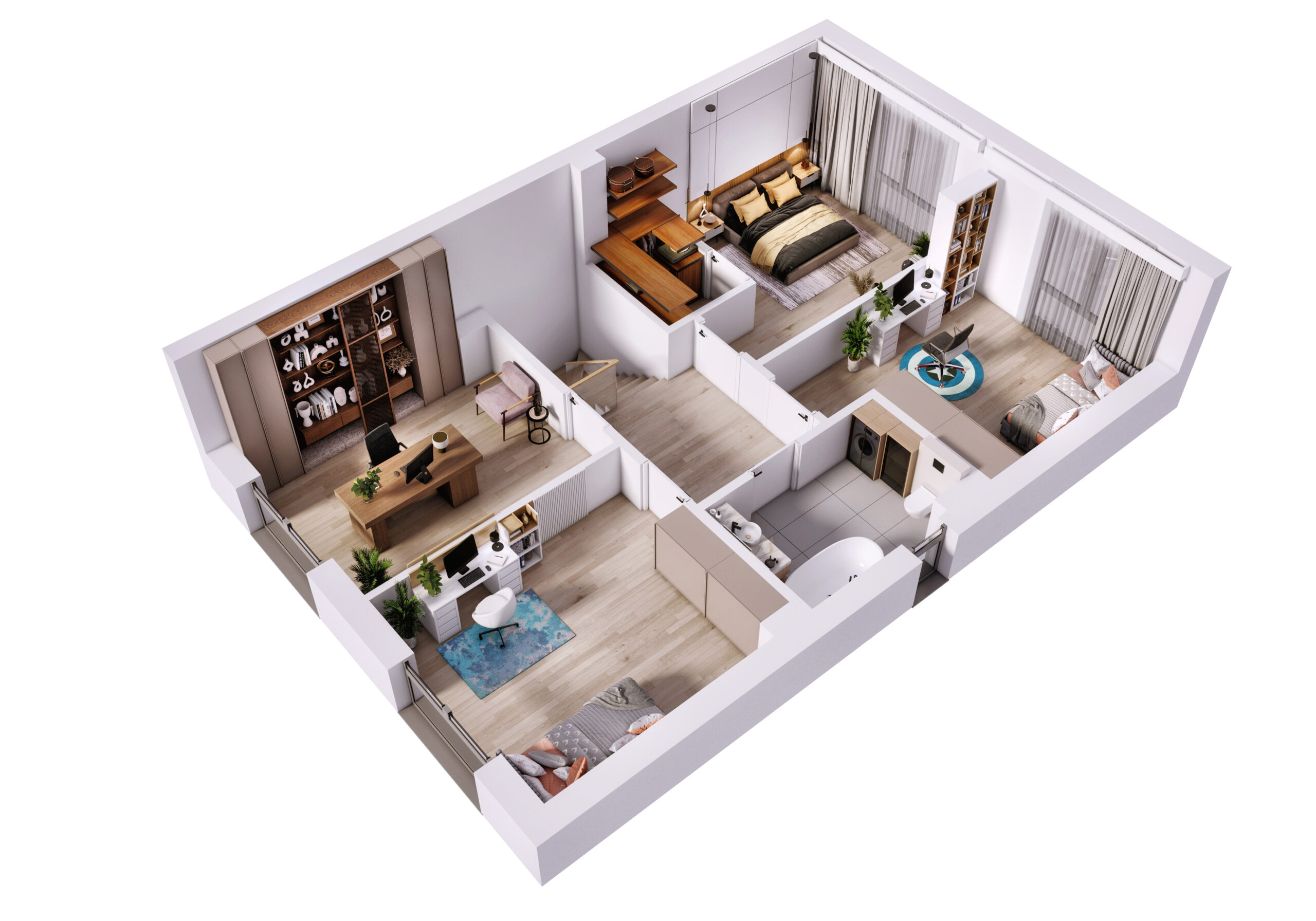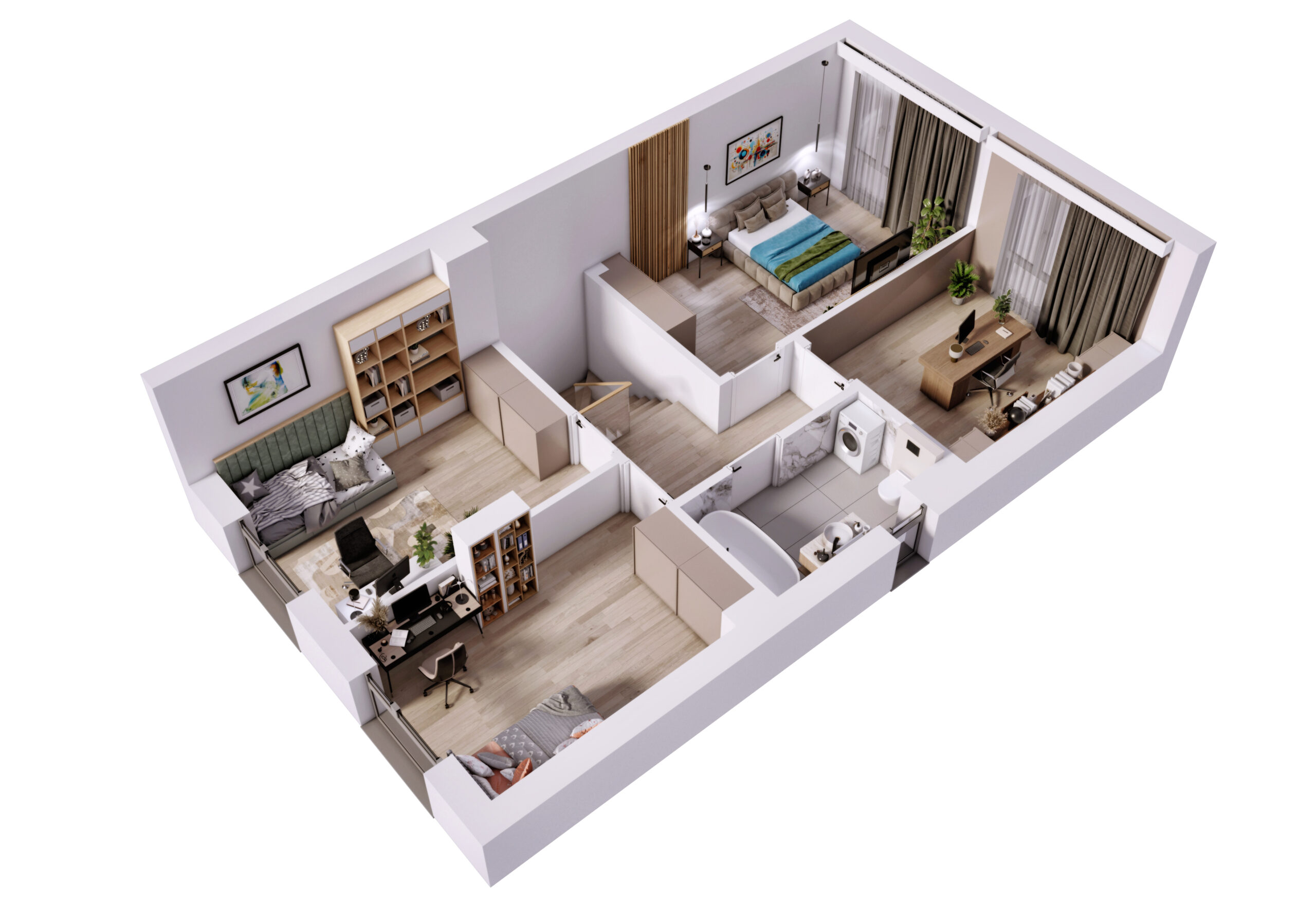 Oferujemy przemyślane rozkłady dla rodzin z dziećmi: wygodne sypialnie, przestronny salon z wyjściem do ogrodu.