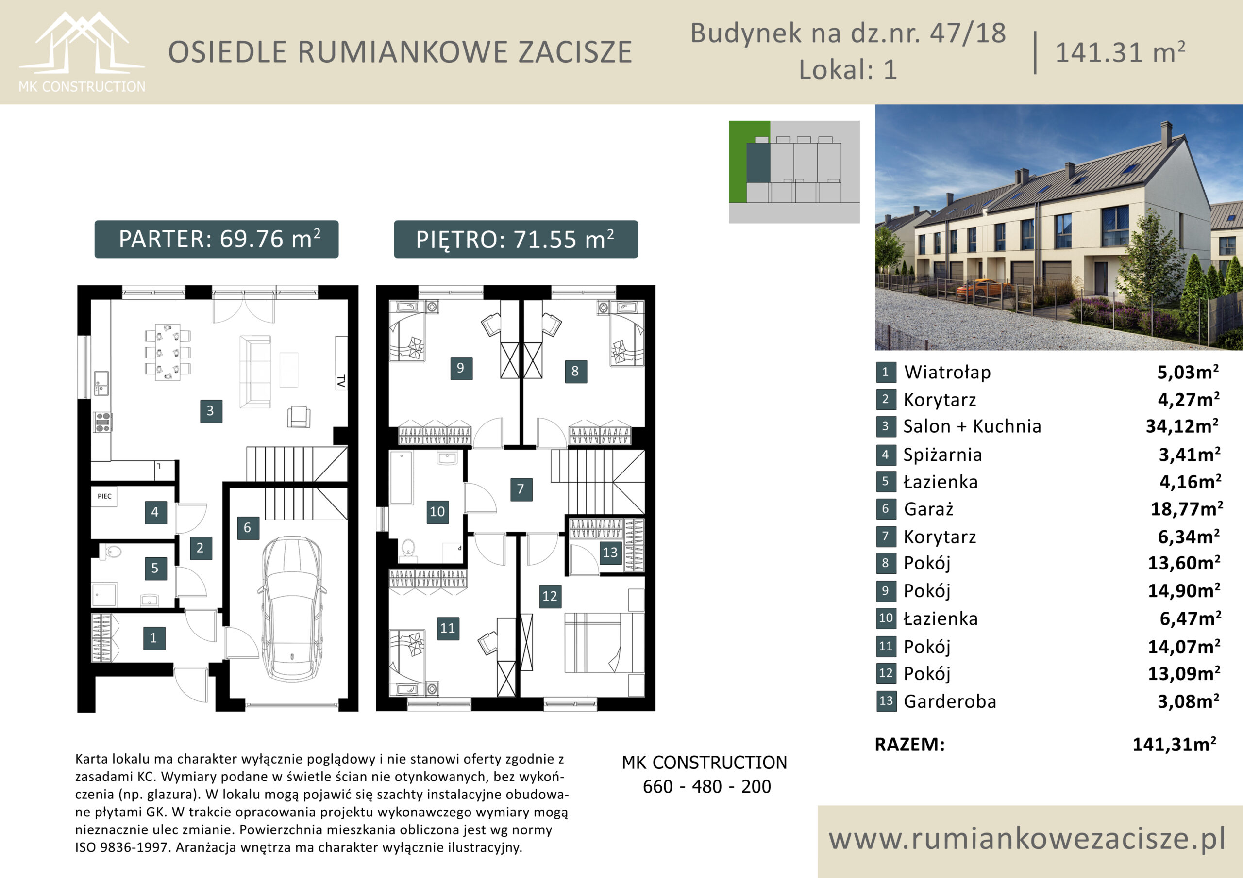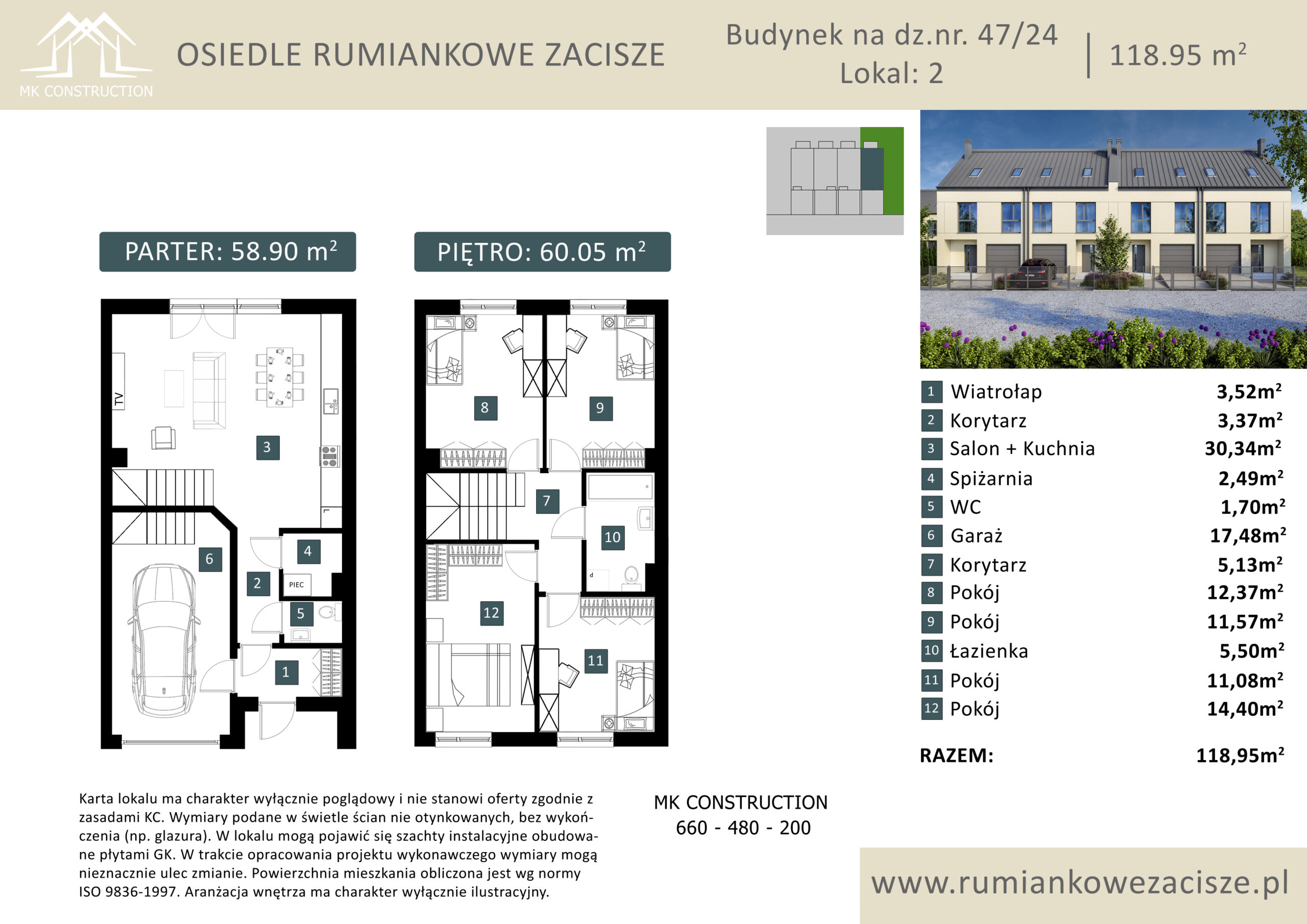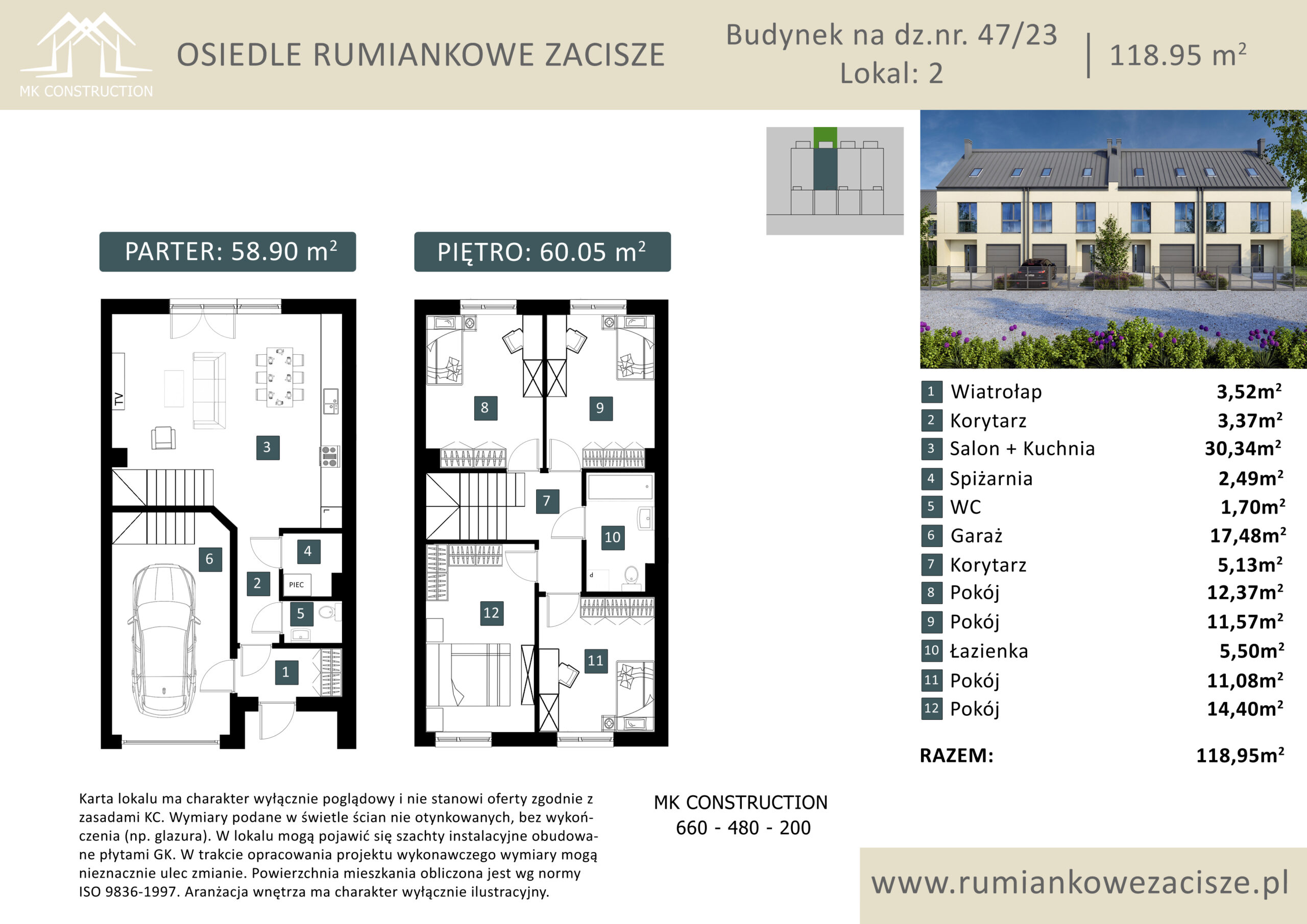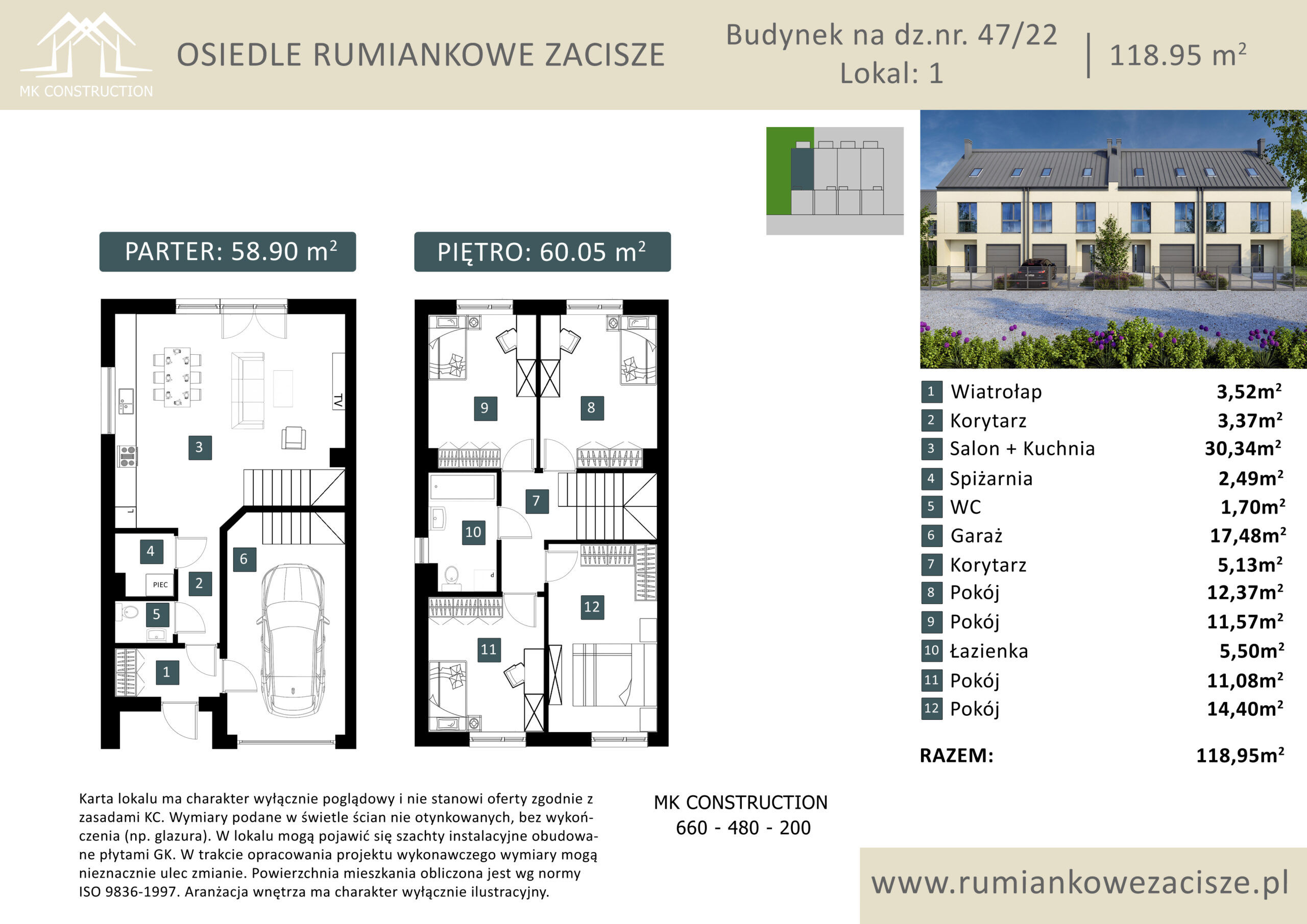 Przygotowaliśmy dla Państwa funkcjonalną przestrzeń mieszkalną. Duży salon z licznymi oknami wspaniale doświetla wnętrze, a prywatny ogród stanowi doskonałą strefę do wypoczynku i spędzania czasu na świeżym powietrzu. Dodatkowo, oferujemy możliwość wykończenia poddasza, tworząc idealne miejsce na praktyczne pomieszczenie techniczne, takie jak pralnia, lub cichy kącik do pracy w formie domowego biura.